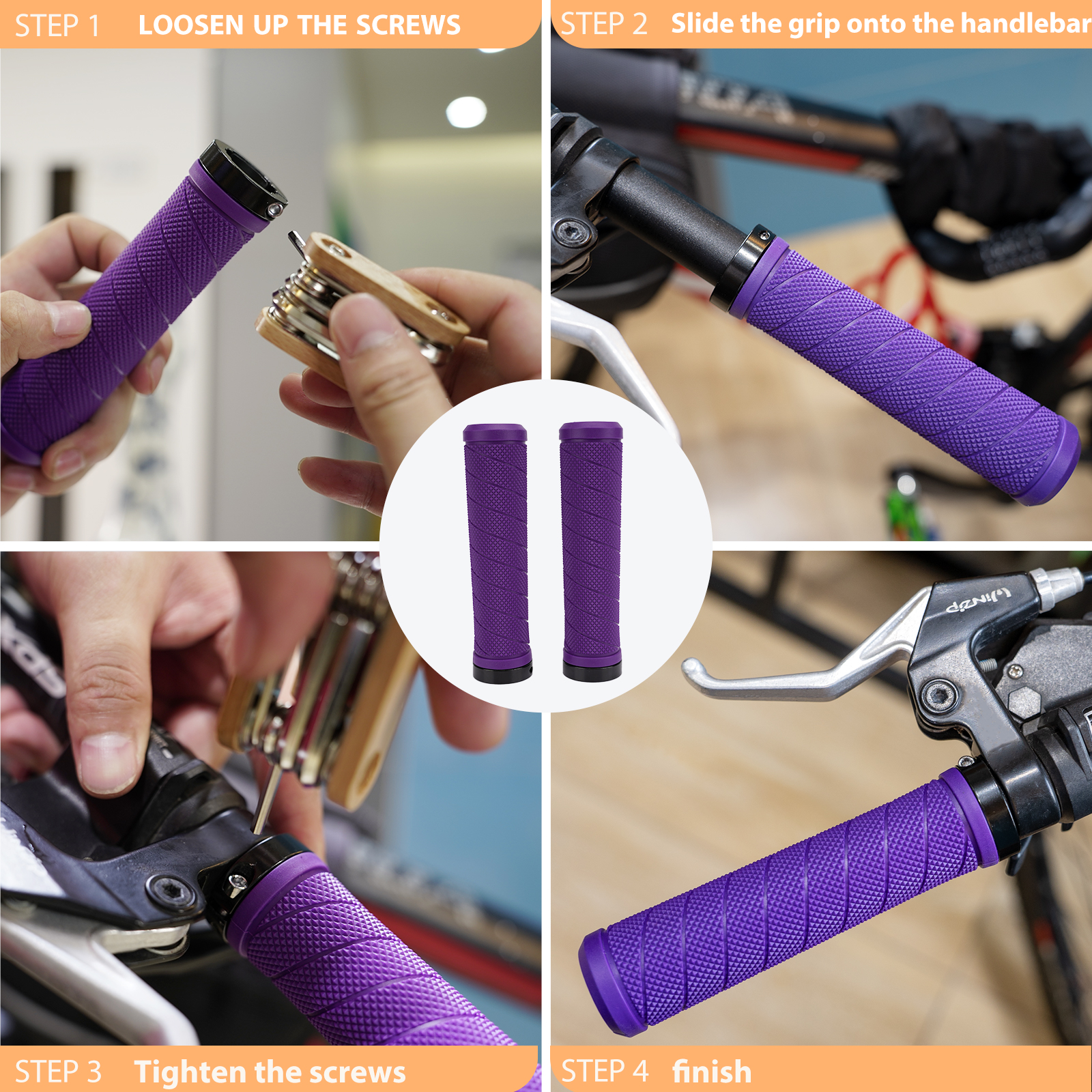 The dual locking collars are crafted to help reduce rotation, particularly on off-road terrain. These grips may fit most standard 22.2mm handlebars, offering broad compatibility for mountain bikes, BMX, e-bikes, and other types of bicycles.