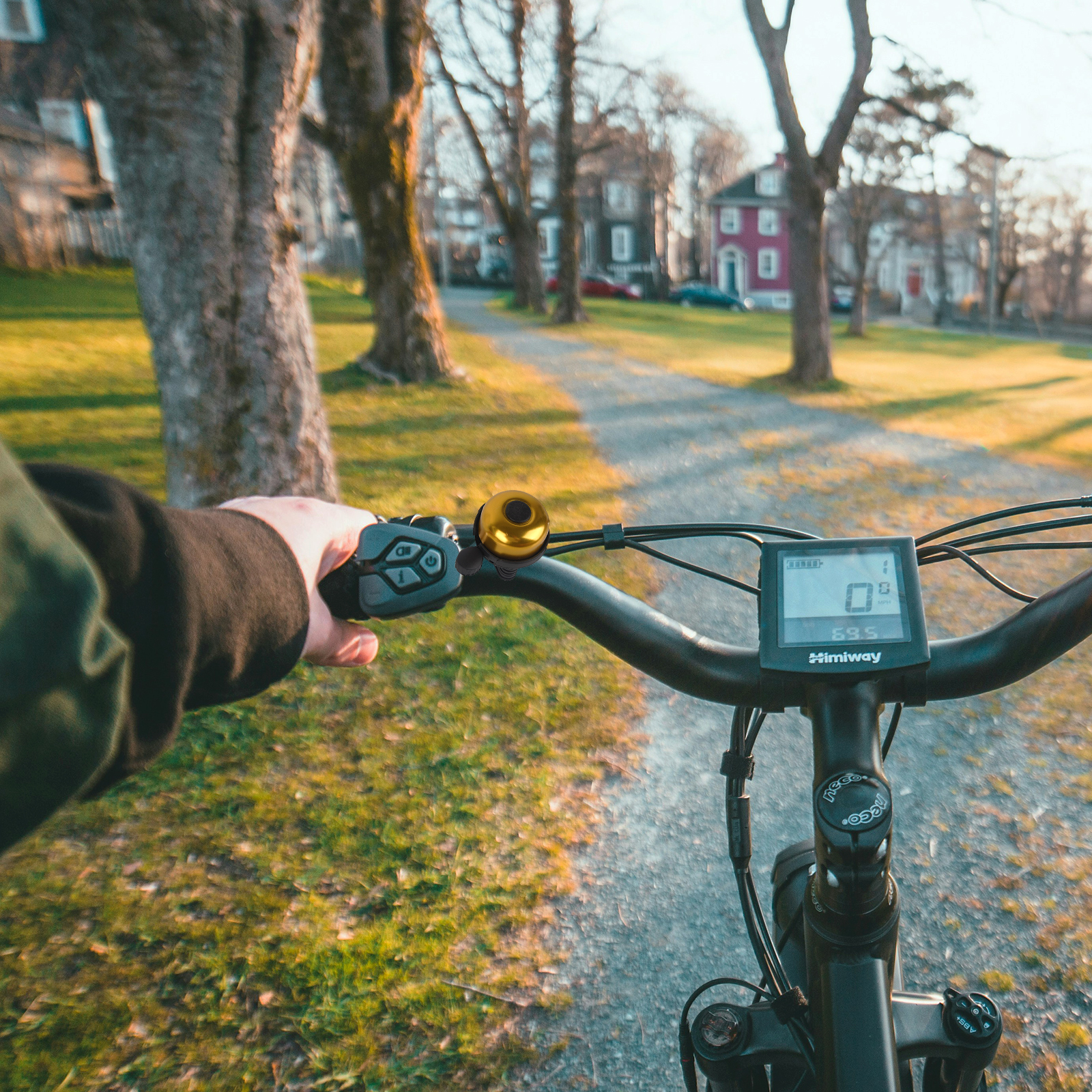 This RidingRush gold bike bell brings a blend of visibility and functionality to your ride.