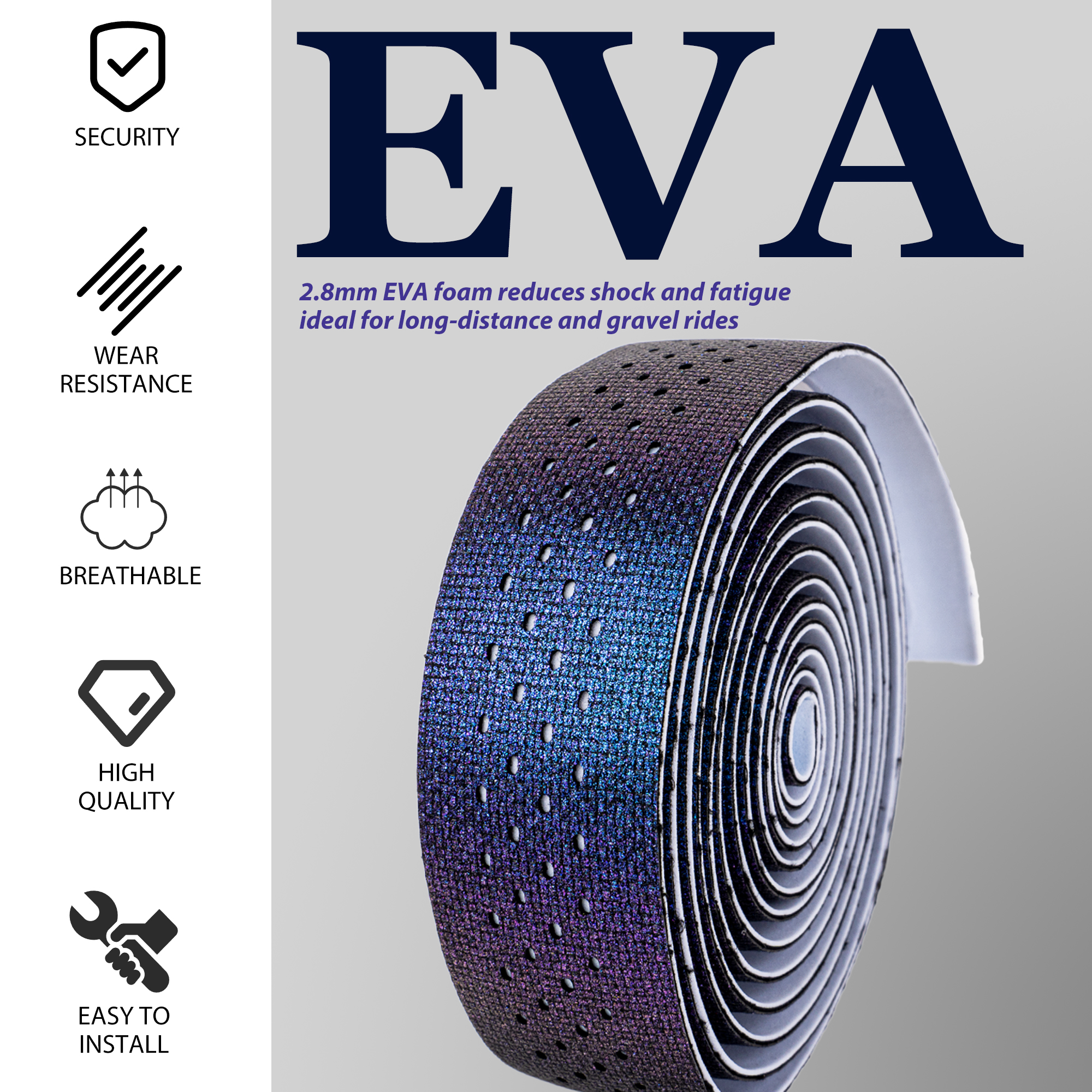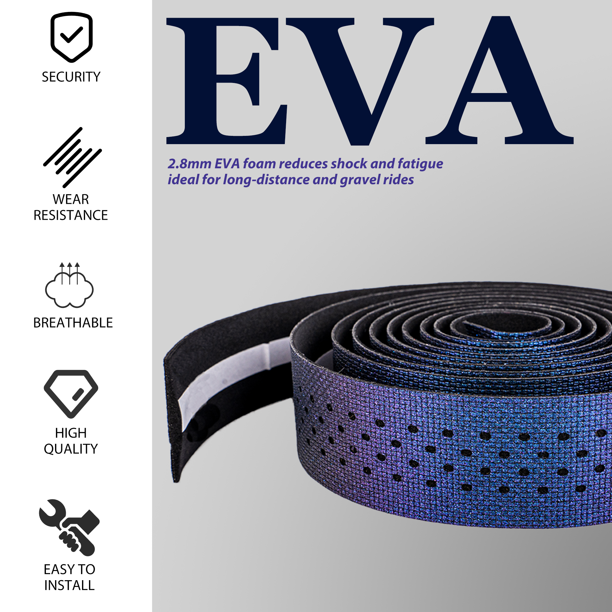 Made from high-quality EVA material, this tape absorbs shocks and vibrations, reducing hand fatigue and enhancing comfort, especially on rough roads.