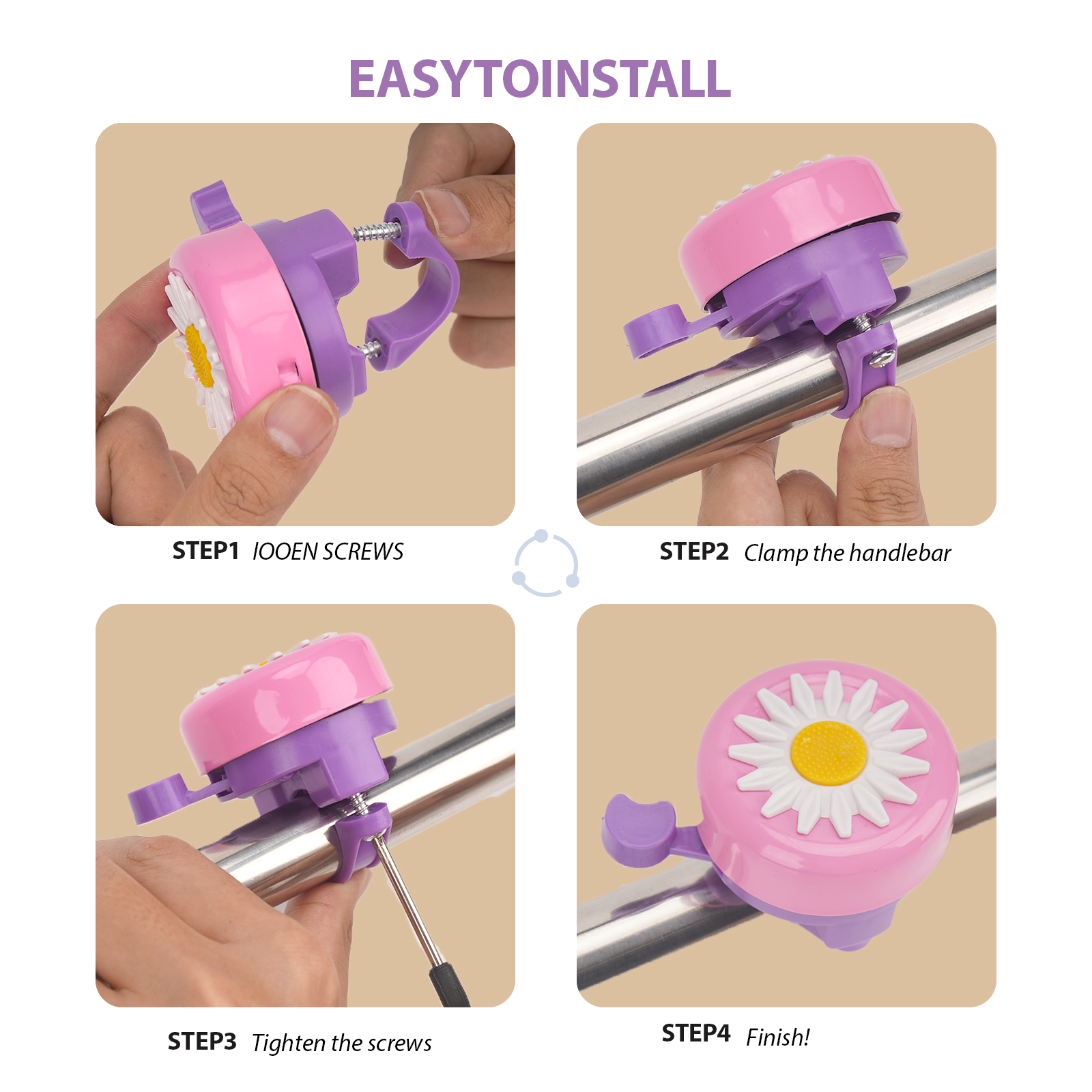 Pink Bike Bell for Kids – Cute Daisy Design, Clear Sound, Great for Girls Bikes, Scooters, and More, Easy to InstallPink Bike Bell for Kids – Cute Daisy Design, Clear Sound, Great for Girls Bikes, Scooters, and More, Easy to Install