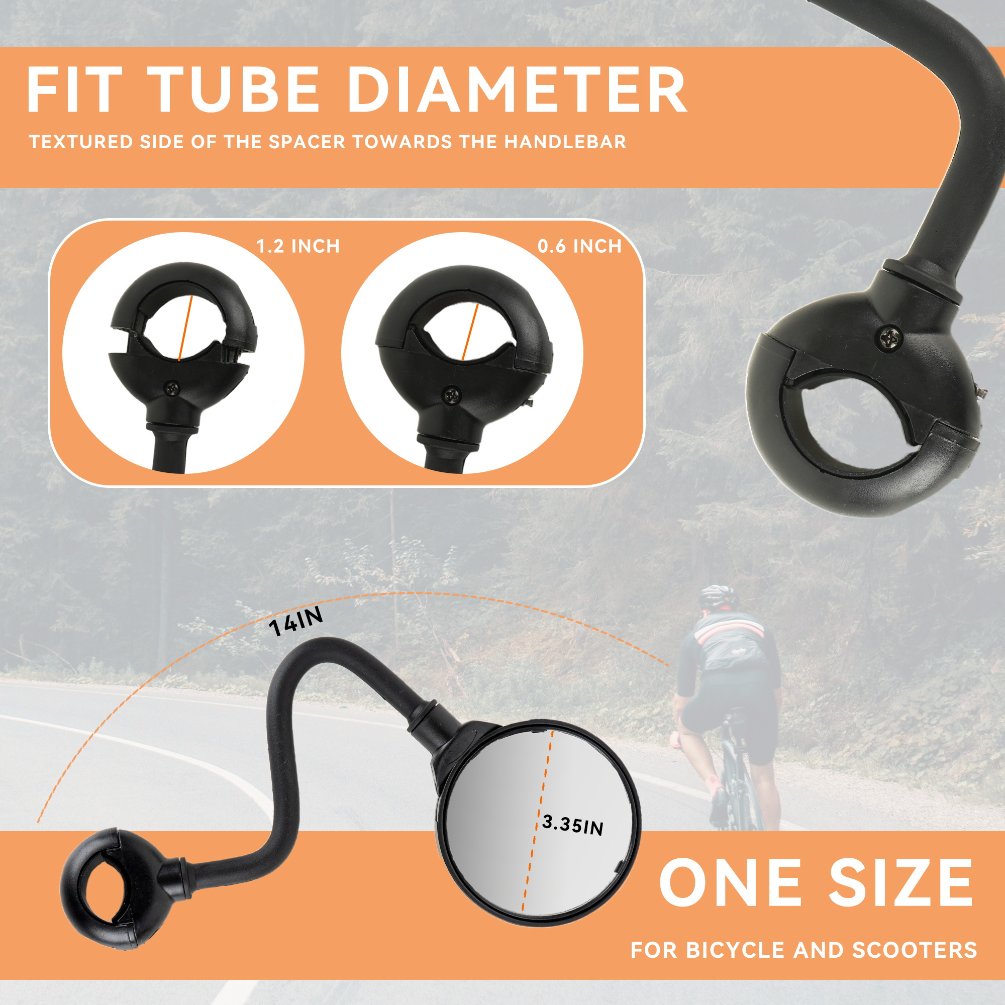 RidingRush Bike Mirror Handlebar Mount – Adjustable Wide-Angle Rear View Mirror, Tool-Free Clamp for 22–32 mm Handlebars Suitable for bicycles, electric bicycles, motorcycles, scooters, etc