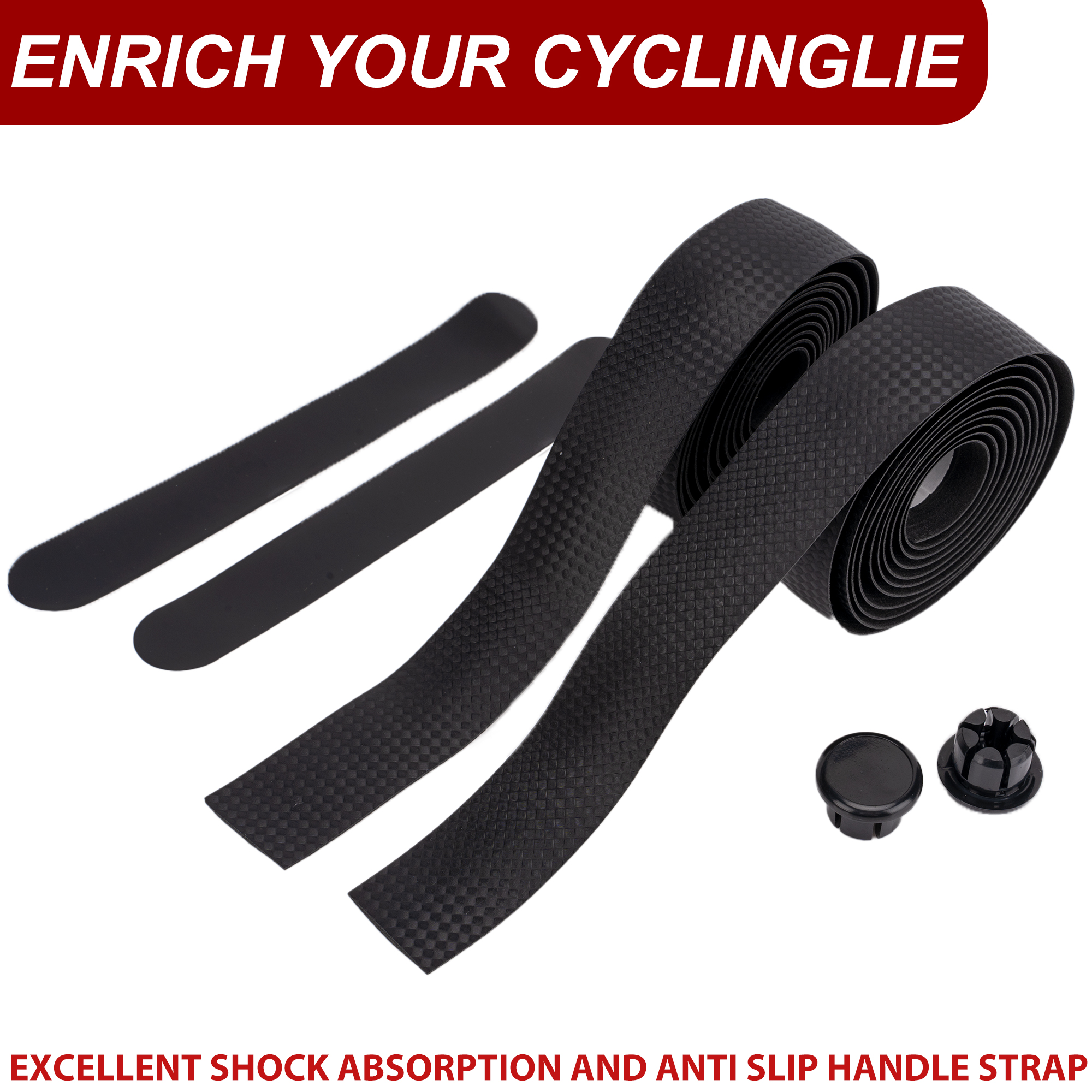 Road Bike Handlebar Tape, Anti-Slip PU EVA Bike Bar Tape, Bike Grip Tape, Handlebar Tape Black Textured for Road & Gravel Bikes – Thickened Shock Absorbing Grip Wrap with Bar End PlugsRoad Bike Handlebar Tape, Anti-Slip PU EVA Bike Bar Tape, Bike Grip Tape, Handlebar Tape Black Textured for Road & Gravel Bikes – Thickened Shock Absorbing Grip Wrap with Bar End Plugs
